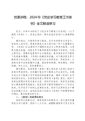 党课讲稿:2024年《党史学习教育工作条例》全文解读学习.docx