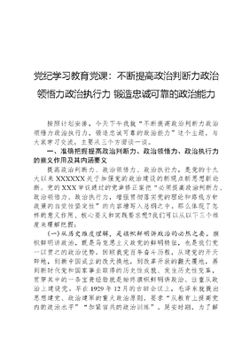 党纪学习教育党课:不断提高政治判断力政治领悟力政治执行力锻造忠诚可靠的政治能力.docx