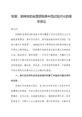 党课:坚持党的全面领导是中国式现代化的根本保证.docx
