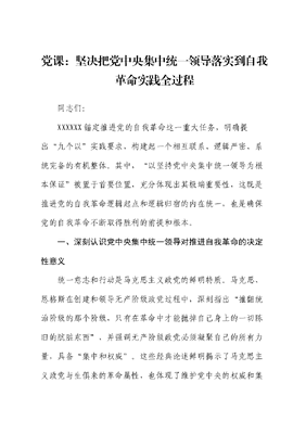 党课:坚决把党中央集中统一领导落实到自我革命实践全过程.docx