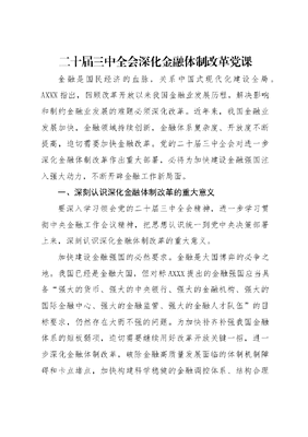 专题党课讲稿:二十届三中全会深化金融体制改革.docx