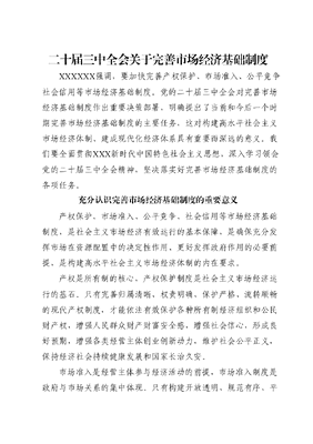 党课讲稿:二十届三中全会关于完善市场经济基础制度.docx