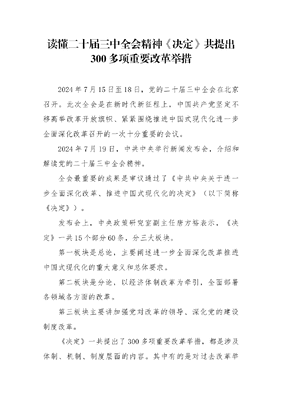 解读二十届三中全会精神讲稿:读懂二十届三中全会精神《决定》共提出300多项重要改革举措.docx