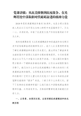 党课讲稿:从抗美援朝到抗疫战争,在光辉历史中汲取新时代砥砺奋进的精神力量.docx