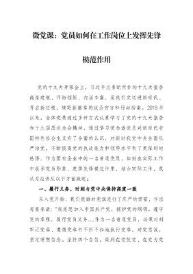 微党课:党员如何在工作岗位上发挥先锋模范作用.docx