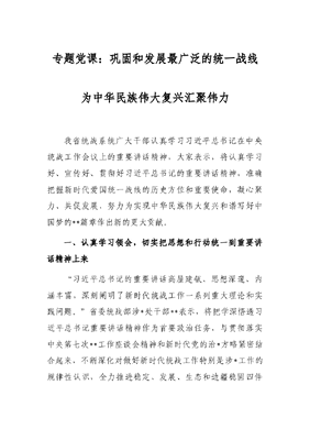 专题党课:巩固和发展最广泛的统一战线为中华民族伟大复兴汇聚伟力.docx