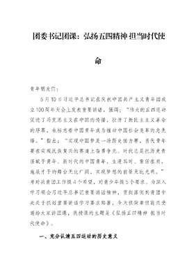 团委书记团课:弘扬五四精神 担当时代使命.docx