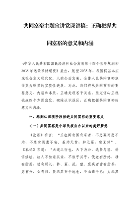 共同富裕主题宣讲党课讲稿:正确把握共同富裕的意义和内涵.docx