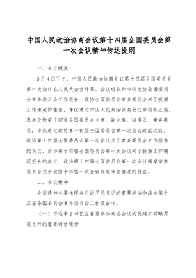 中国人民政治协商会议第十四届全国委员会第一次会议精神传达提纲.docx