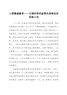 心理健康教育--正确对待利益得失保持良好积极心态.docx