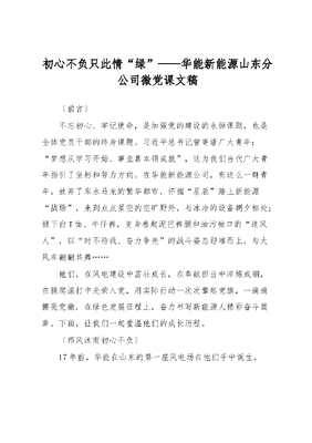 初心不负只此情“绿”——华能新能源山东分公司微党课文稿.docx