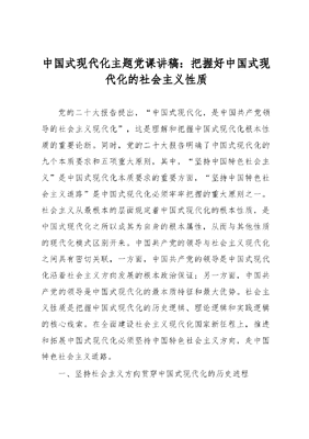 中国式现代化主题党课讲稿:把握好中国式现代化的社会主义性质.docx