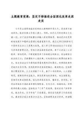 主题教育党课:坚定不移推进全面深化改革走深走实.docx