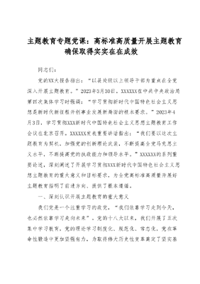 主题教育专题党课:高标准高质量开展主题教育确保取得实实在在成效.docx