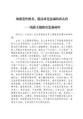 加强党性修养,提高对党忠诚的再认识+——残联主题教育党课材料.docx