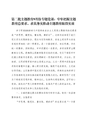 第二批主题教育9月份专题党课:牢牢把握主题教育总要求,求真务实推动主题教育取得实效.docx