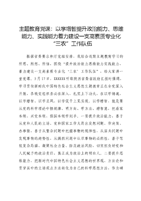 主题教育党课:以学增智提升政治能力、思维能力、实践能力 着力建设一支高素质专业化“三农”工作队伍.docx