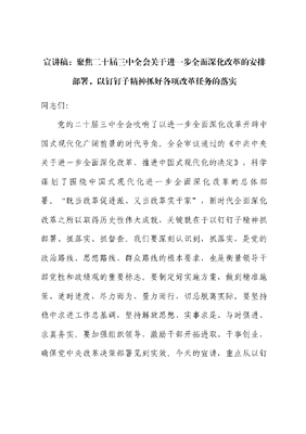 二十届三中全会党课讲稿:以钉钉子精神抓好各项改革任务的落实.docx