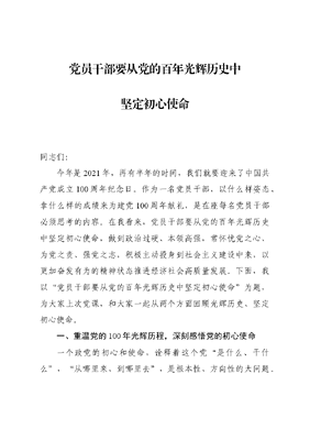 党课讲稿:党员干部要从党的百年光辉历史中坚定初心使命.docx