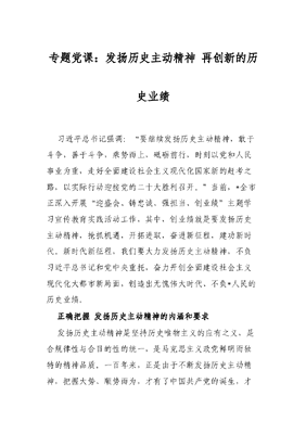 专题党课:发扬历史主动精神 再创新的历史业绩.docx