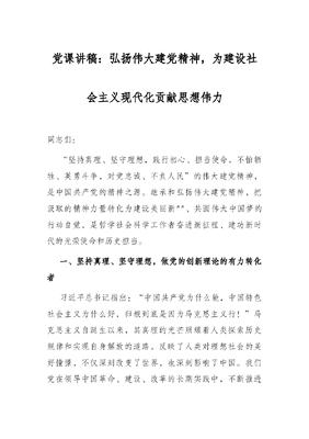 党课讲稿:弘扬伟大建党精神,为建设社会主义现代化贡献思想伟力.docx