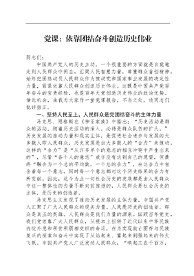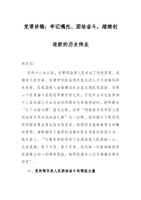 党课讲稿:牢记嘱托、团结奋斗,继续创造新的历史伟业.docx