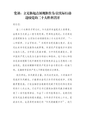 党课:立足新起点展现新作为 以实际行动迎接党的二十大胜利召开.docx