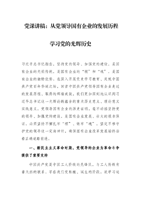 党课讲稿:从党领导国有企业的发展历程学习党的光辉历史.docx