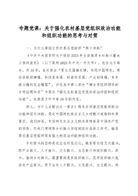 专题党课:关于强化农村基层党组织政治功能和组织功能的思考与对策.docx