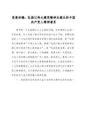 党课讲稿:弘扬以伟大建党精神为源头的中国共产党人精神谱系.docx