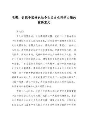 党课:认识中国特色社会主义文化科学内涵的重要意义.docx