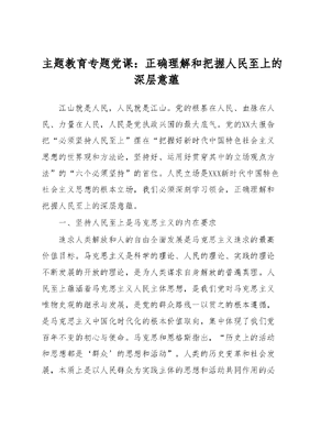 主题教育专题党课:正确理解和把握人民至上的深层意蕴.docx