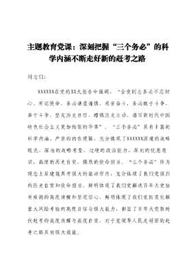 主题教育党课:深刻把握“三个务必”的科学内涵 不断走好新的赶考之路.docx