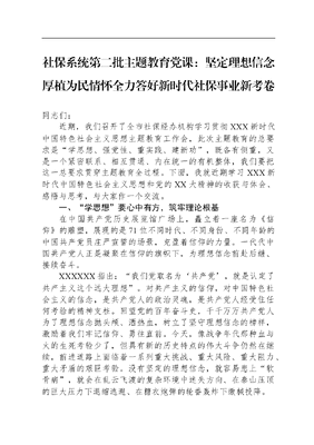 社保系统第二批主题教育党课:坚定理想信念,厚植为民情怀全力答好新时代社保事业新考卷.docx