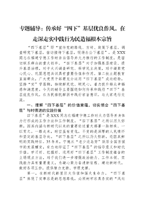 专题辅导:传承好“四下”基层优良作风,在走深走实中践行为民造福根本宗旨.docx