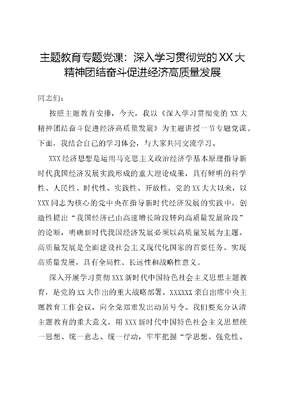 主题教育专题党课:深入学习贯彻党的二十大精神 团结奋斗 促进经济高质量发展.docx