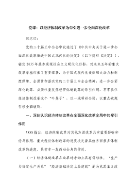 党课:以经济体制改革为牵引进一步全面深化改革.docx