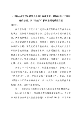 《国有企业管理人员处分条例》廉政党课讲稿:紧握纪律尺子铸牢廉政基石,以“铁纪律”护航集团高质量发展.docx