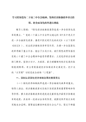 深度解读全会精神稿:发挥经济体制改革牵引作用 ,把全面深化改革进行到底.docx