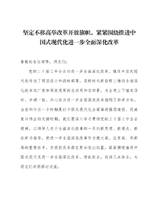 二十届三中全会精神宣讲讲稿:坚定不移高举改革开放旗帜,紧紧围绕推进中国式现代化进一步全面深化改革.docx