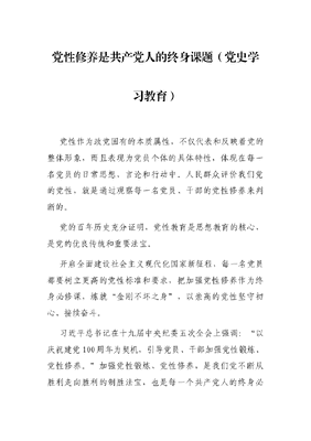 党性修养是共产党人的终身课题(党史学习教育).docx