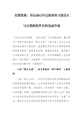 主题党课:不忘初心牢记使命努力建设人与自然和谐共生的美丽中国.docx