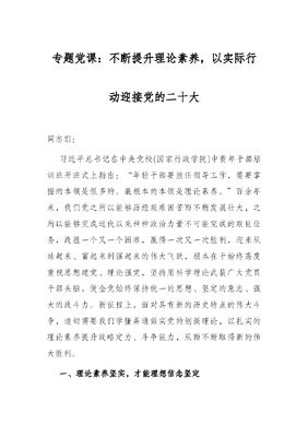 专题党课:不断提升理论素养,以实际行动迎接党的二十大.docx