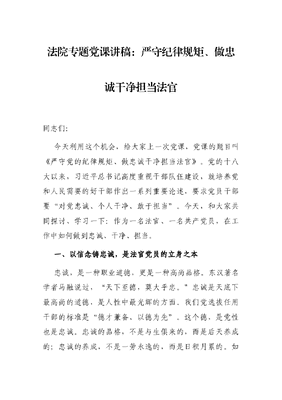 法院专题党课讲稿:严守纪律规矩、做忠诚干净担当法官.docx
