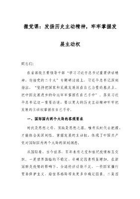 微党课:发扬历史主动精神,牢牢掌握发展主动权.docx
