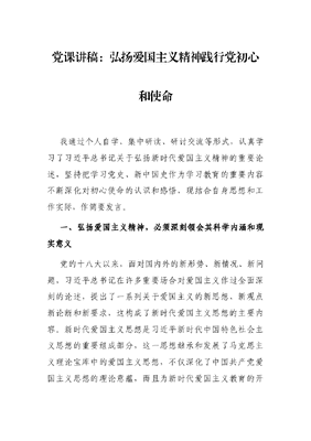 党课讲稿:弘扬爱国主义精神践行党初心和使命.docx