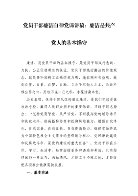 党员干部廉洁自律党课讲稿:廉洁是共产党人的基本操守.docx