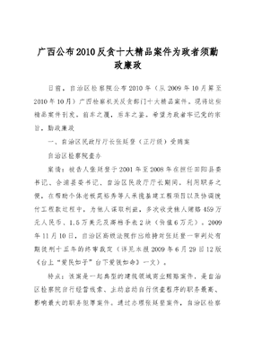 广西公布2010反贪十大精品案件为政者须勤政廉政.docx