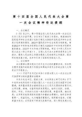第十四届全国人民代表大会第一次会议精神传达提纲.doc