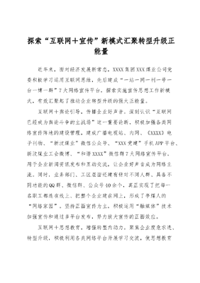 探索“互联网+宣传”新模式汇聚转型升级正能量.docx